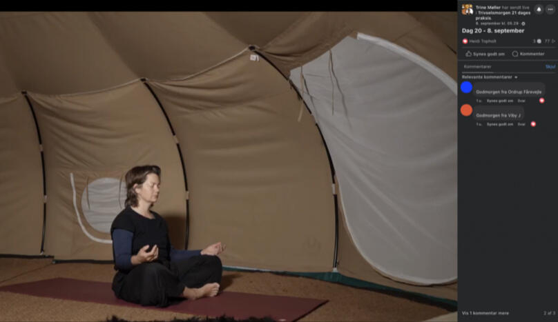 Du tilmelder dig på [email protected]Jeg inviterer dig ind i Facebook gruppen "21 dages nærværspraksis 22/4-13/5"D. 22/4 starter de 21 dage op, kl. 5.30-6.30 LIVE i gruppen og fra teltet.Du kan herefter tilgå hver video når det passer dig - eller være med i energien LIVE.Du kan kun se mig - og jeg eller de andre deltagere, kan ikke se dig.Du skal bruge en måtte og et tæppe. Nogle foretrækker en siddepude og eventuelt et skind.Det vigtigste er, at du gør dig det så behageligt så muligt, for at praktisere dit nærvær.
